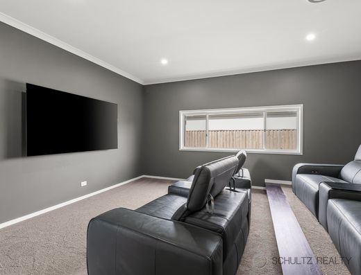 - Media room or dedicated study with air conditioning, ceiling fan and timber look hybrid flooring