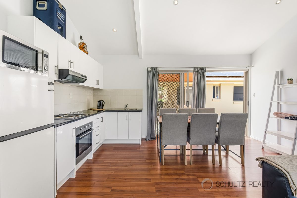 • Open-plan living and dining with hybrid flooring, split-system air conditioning, and ceiling fans