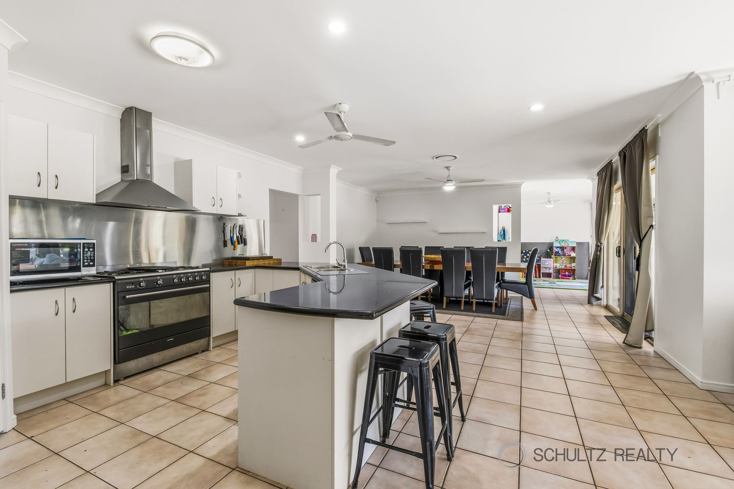 • Open-plan kitchen, dining & living area featuring a 900mm oven/stove, breakfast bar, and abundant storage