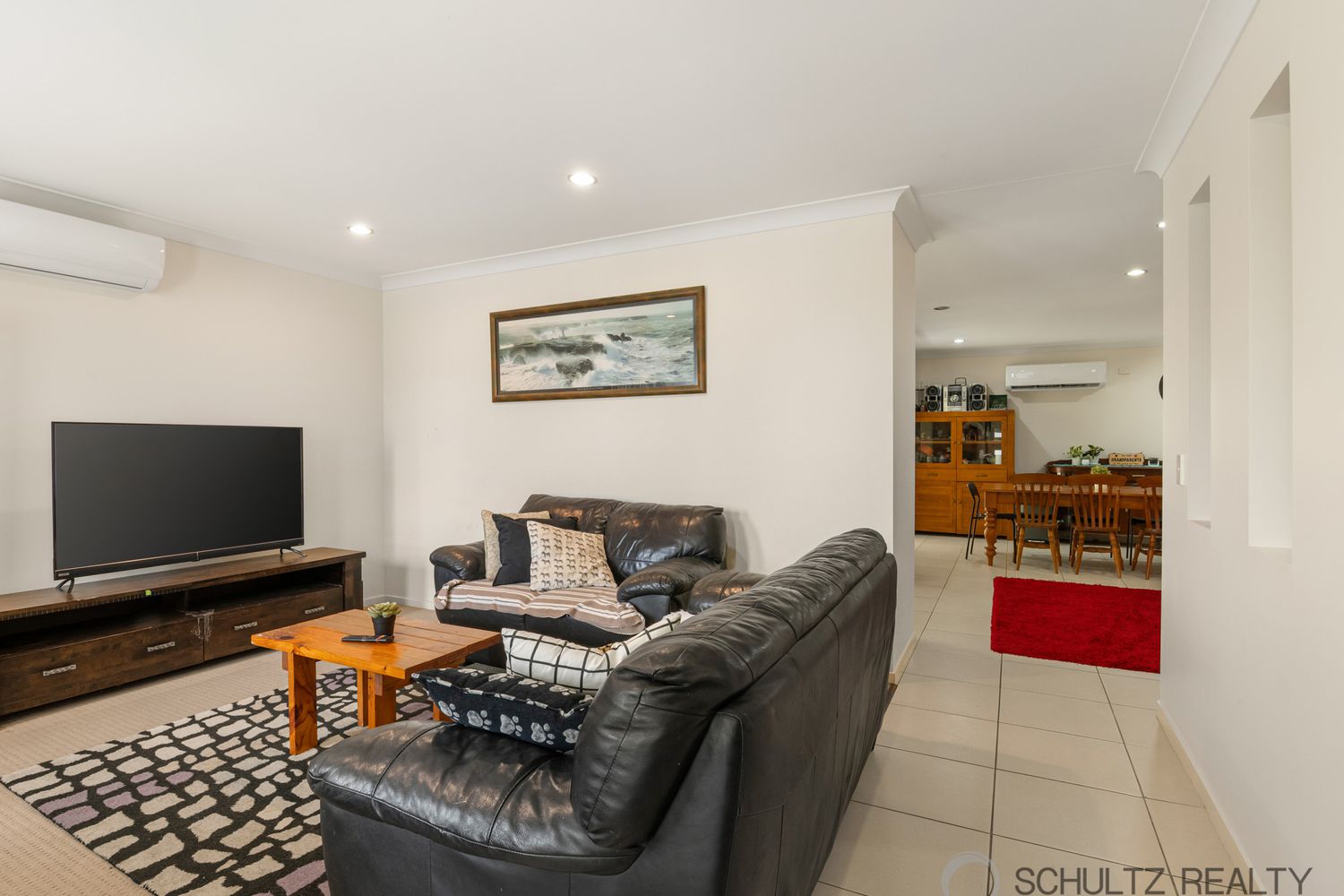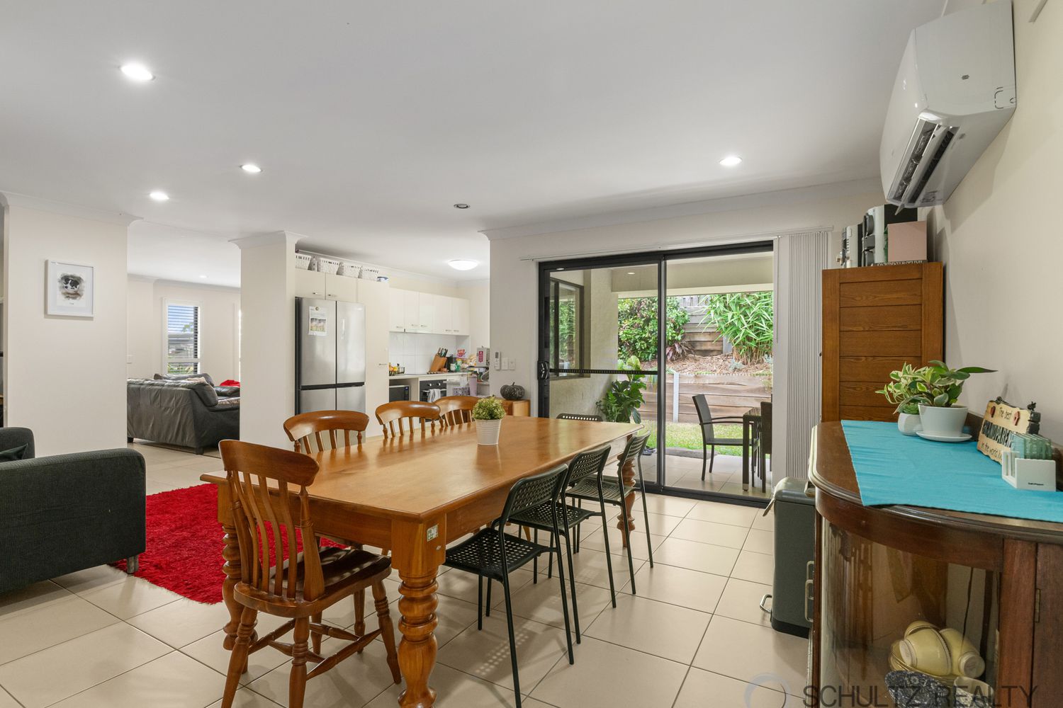 - Open plan kitchen/dining/family area with air conditioning and sliding door to the outdoor entertaining area
