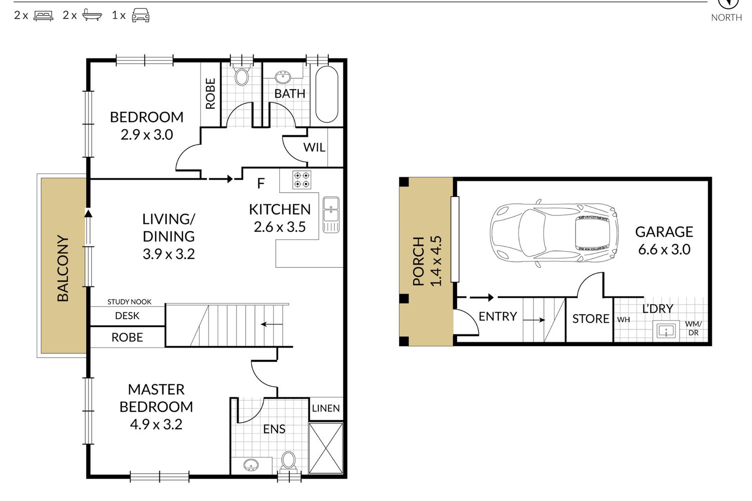 This modern townhouse features a light-filled open-plan living, dining and kitchen space opening to a private balcony. Kitchen with good storage, dishwasher and breakfast bar. Two carpeted bedrooms with sliding built-in robes, master bedroom with ensuite, main bathroom with shower over bath. Single lock up garage with storage and laundry.