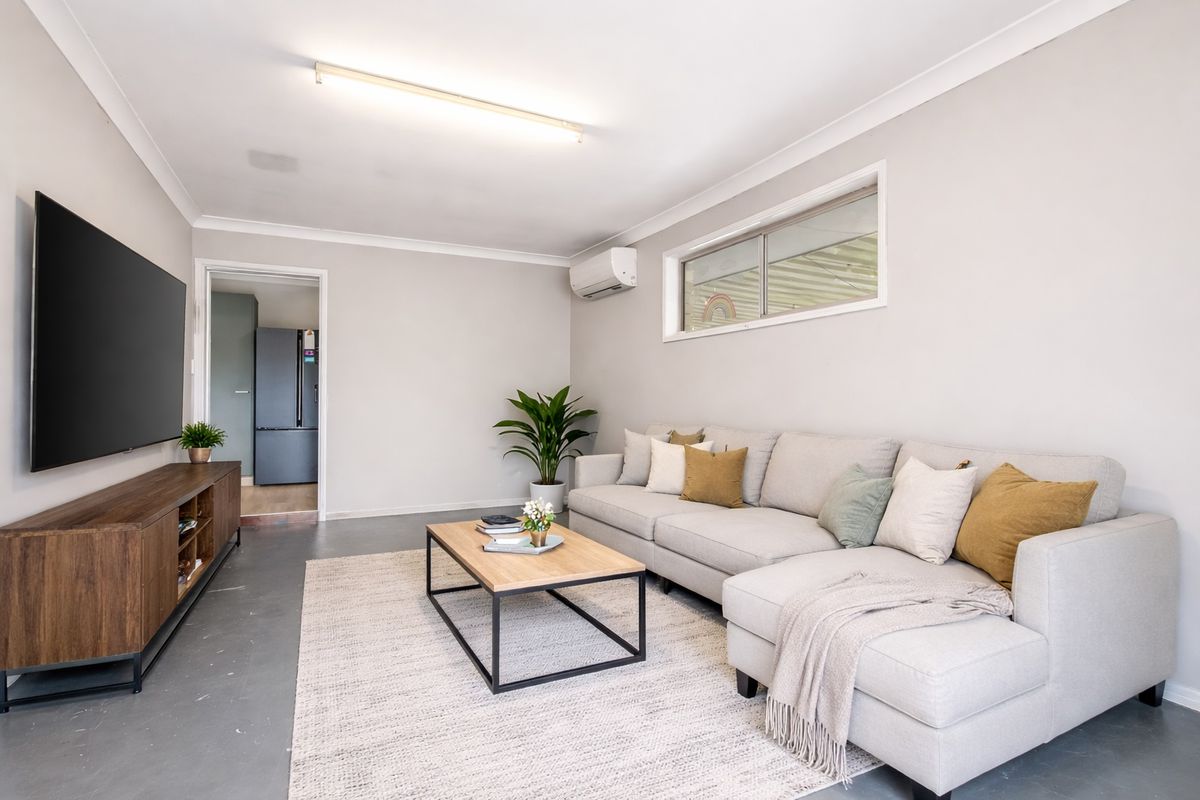 This well-designed 3 bedroom home provides practical, low-maintenance living. Open plan living and dining area with new hybrid flooring, ceiling fan and air conditioning. Updated kitchen with electric upright stove overlooking the covered outdoor area. 3 bedrooms all with new carpet, built in robes, air conditioning and ceiling fans. Master bedroom with access to the 2-way bathroom. Outside you’ll find a fully fenced grassed backyard, large covered entertaining area, garden shed plus side access. Garage converted to extra living area but can easily be converted back to a single garage. Positioned in a convenient Eagleby location close to shops, schools and transport.