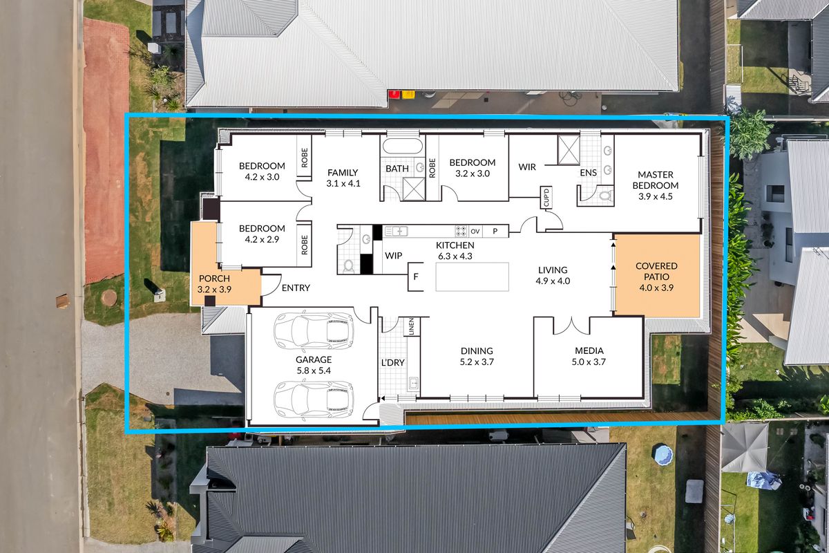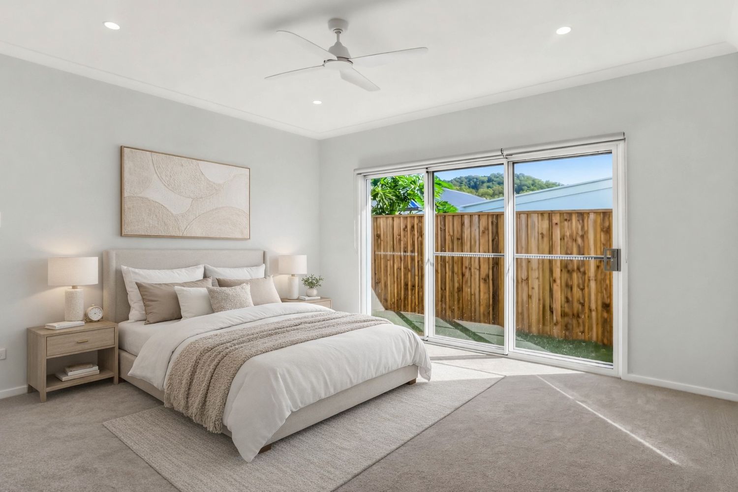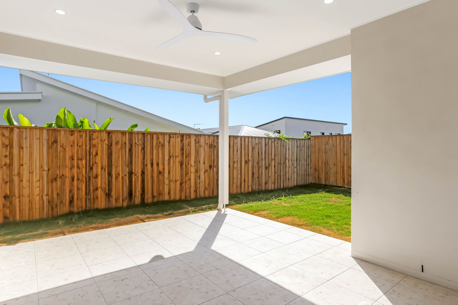 - Covered outdoor entertaining area with ceiling fan