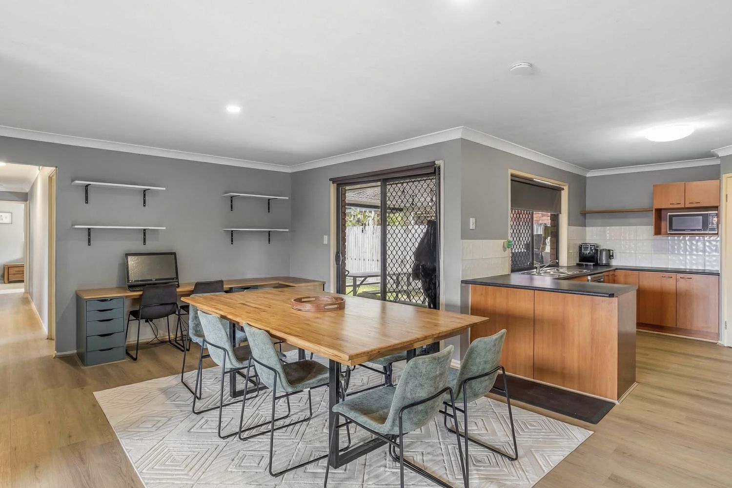 - Open plan living/dining/kitchen area with new timber look flooring and air conditioning