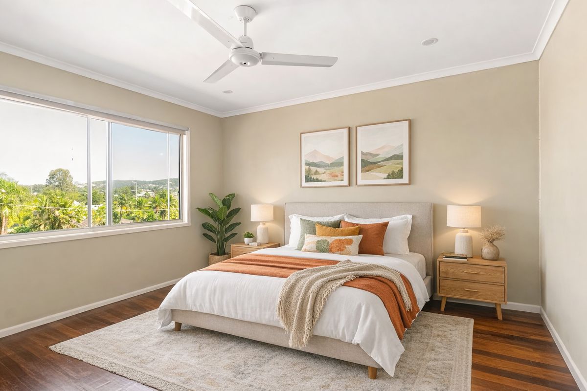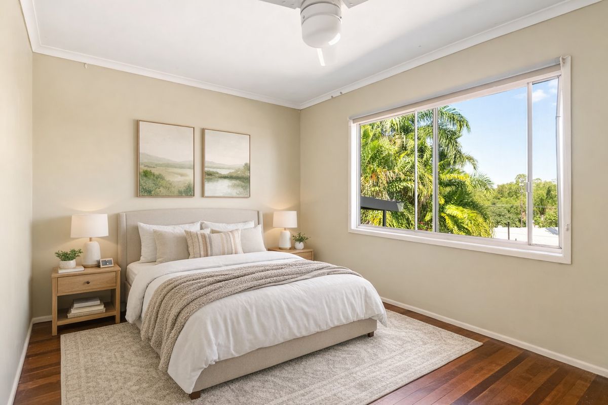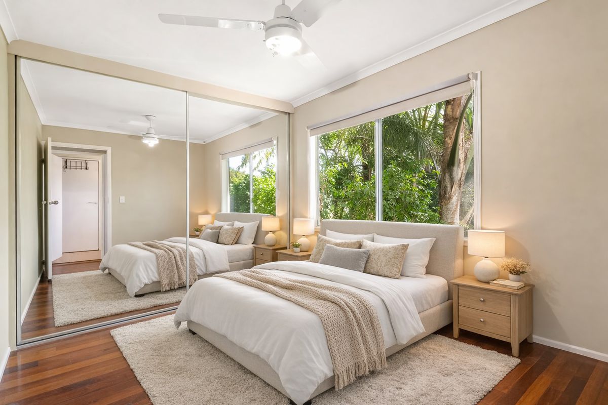 - 3 bedrooms with ceiling fans and timber flooring