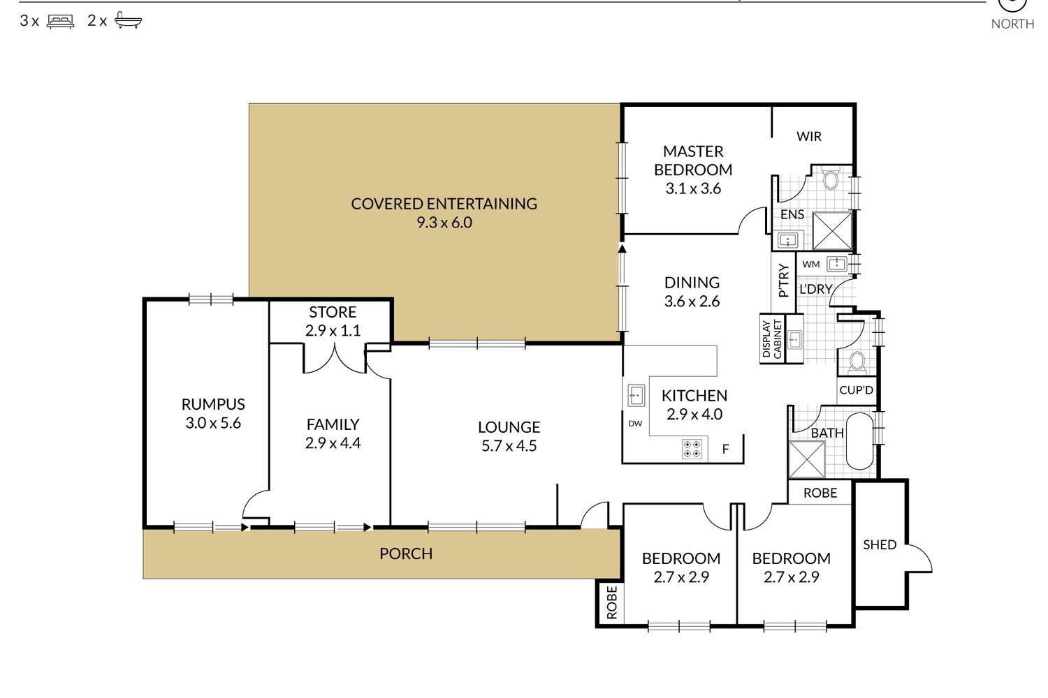 - Great size outdoor entertaining area with high insulated roof and 2 ceiling fans