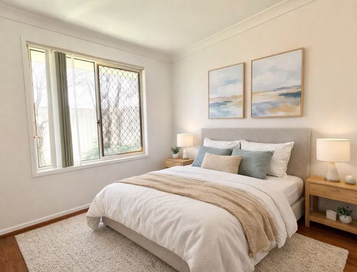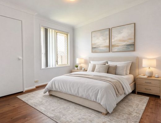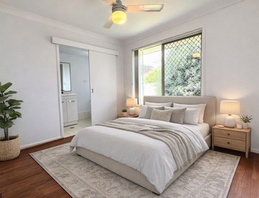 ⢠Bedroom 3 with ceiling fan, air conditioning, mirror robes and access to 2-way bathroom